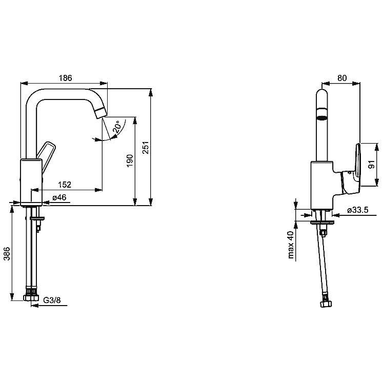 - Anschluss über flexible Druckschläuche G 3/8