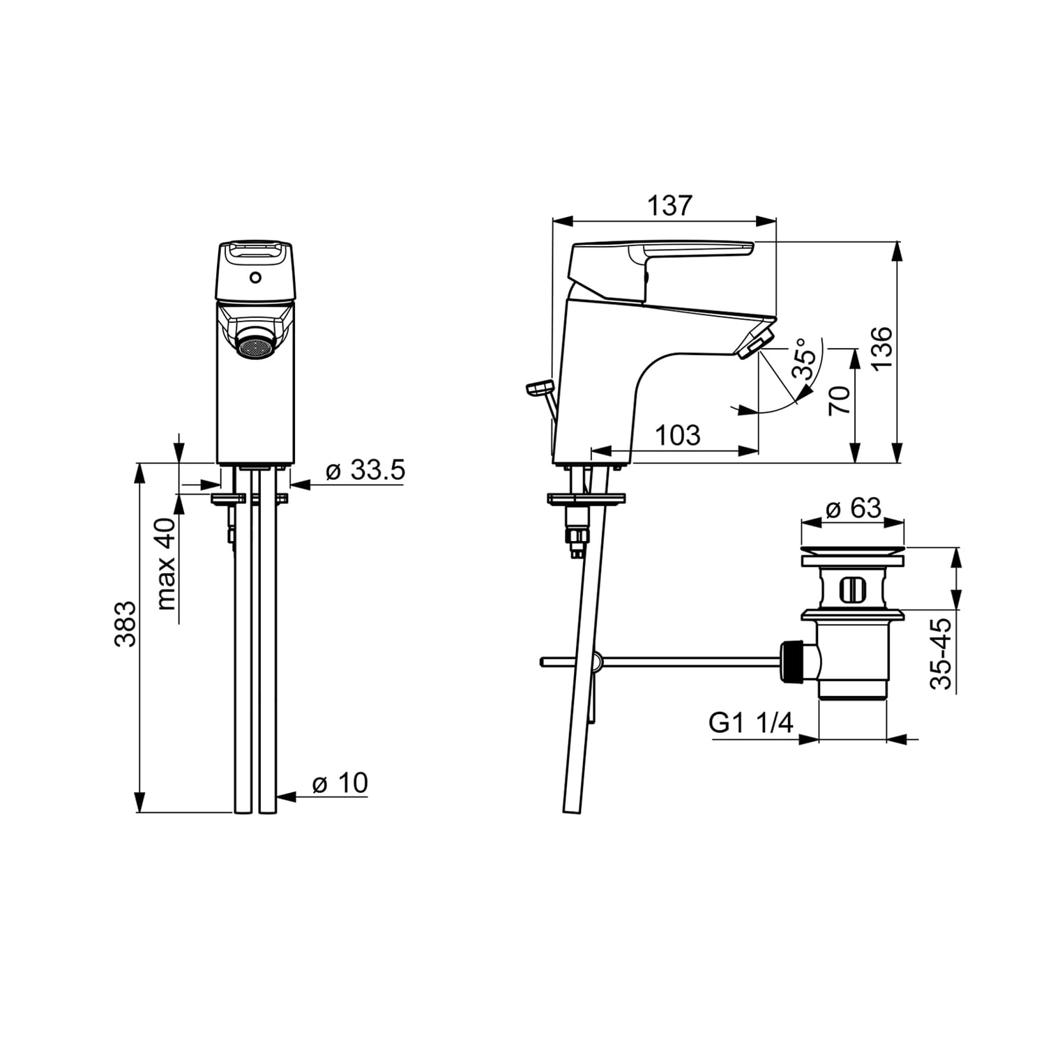 - mechanische Teile: ø 3.5 classic Steuerpatrone mit keramischen Dichtscheiben zur Wassermengen- und Temperatureinstellung