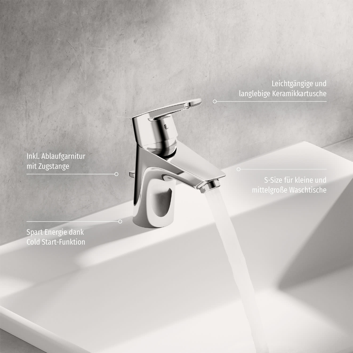 - Temperatureinstellungen: Temperaturbegrenzer, Heißwassersperre einstellbar, Energiespar-Variante (Cold Start), Kaltwasser in Mittelstellung