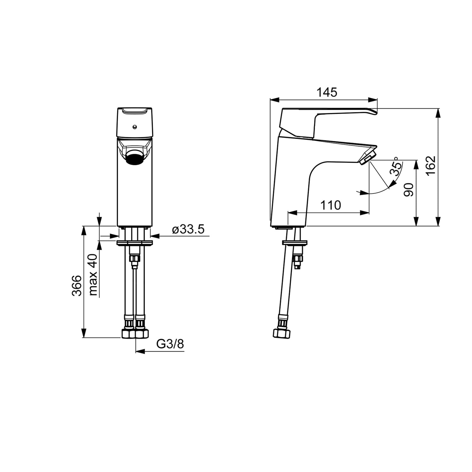 - mechanische Teile: ø 3.5 classic Steuerpatrone mit keramischen Dichtscheiben zur Wassermengen- und Temperatureinstellung