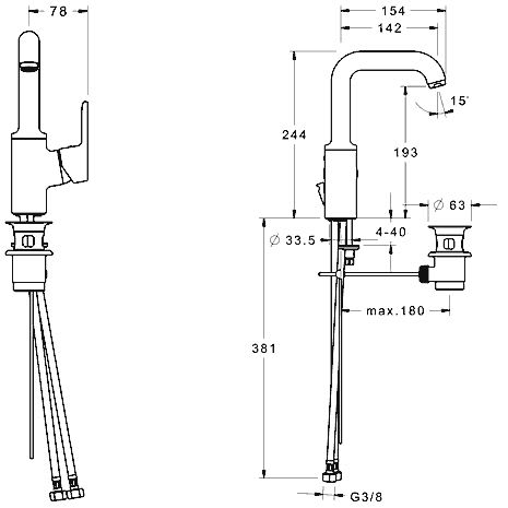 - Durchflussmenge: 6 l/min, gemessen bei 3 bar Fließdruck