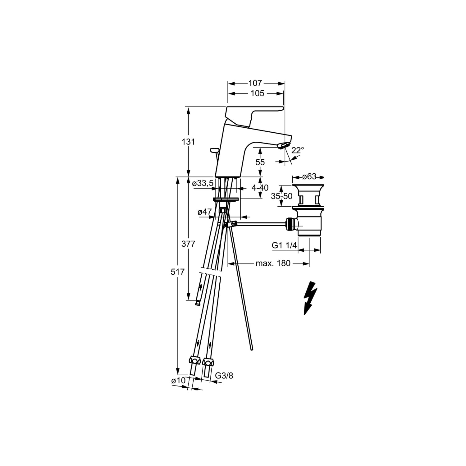 - Ablaufgarnitur (Metall) und Zugbetätigung