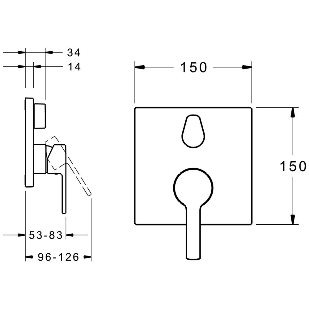 Hansa HANSARONDA Einhand-Wannen-Funktionseinheit mit Sicherungseinrichtung, Rosette eckig