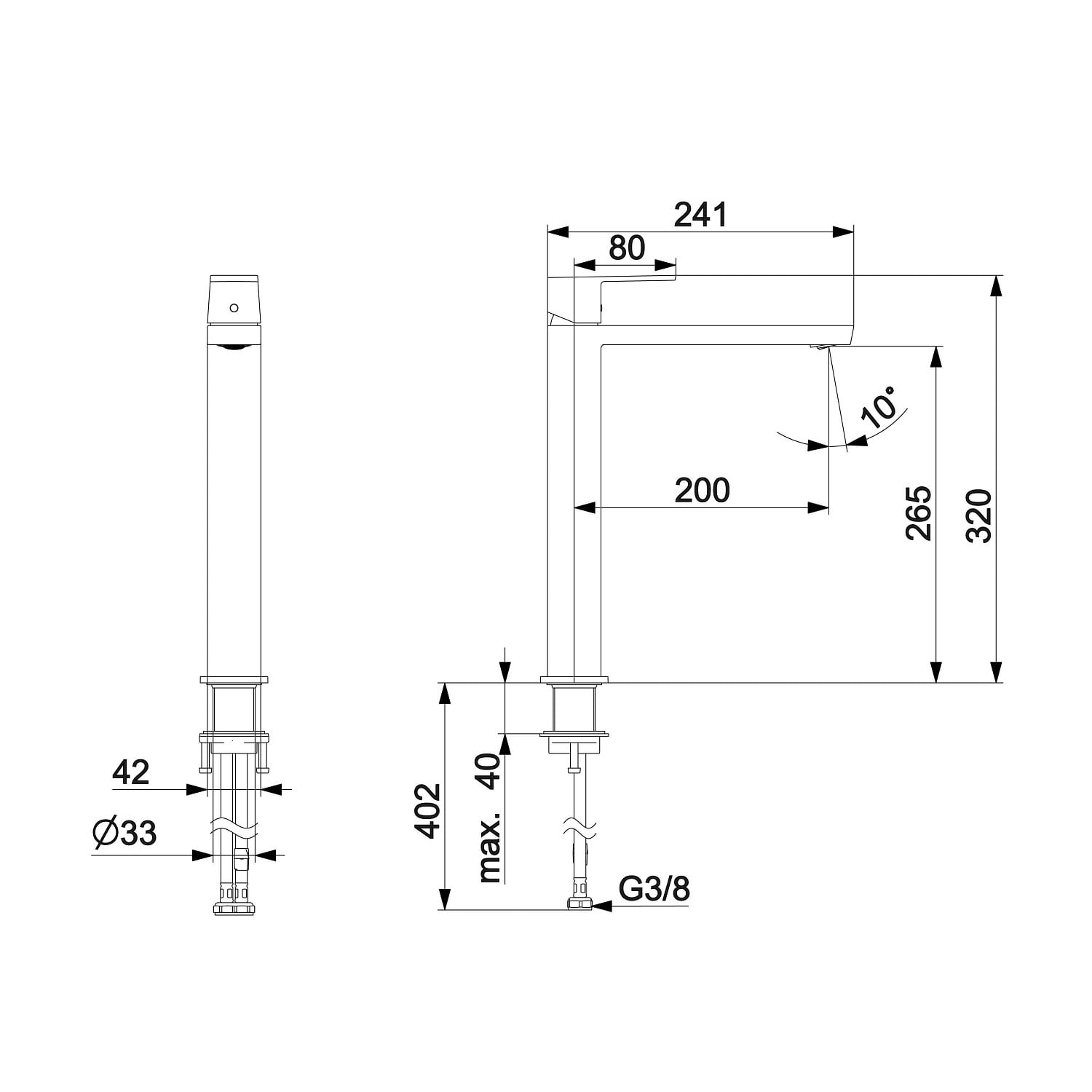 - Anschluss über flexible Druckschläuche G 3/8