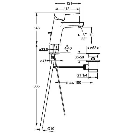- Ablaufgarnitur (Metall) und Zugbetätigung