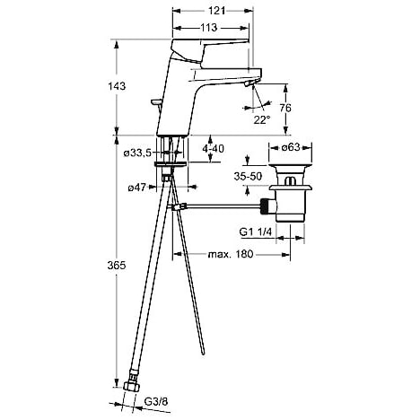 - Anschluss über Druckschläuche G 3/8