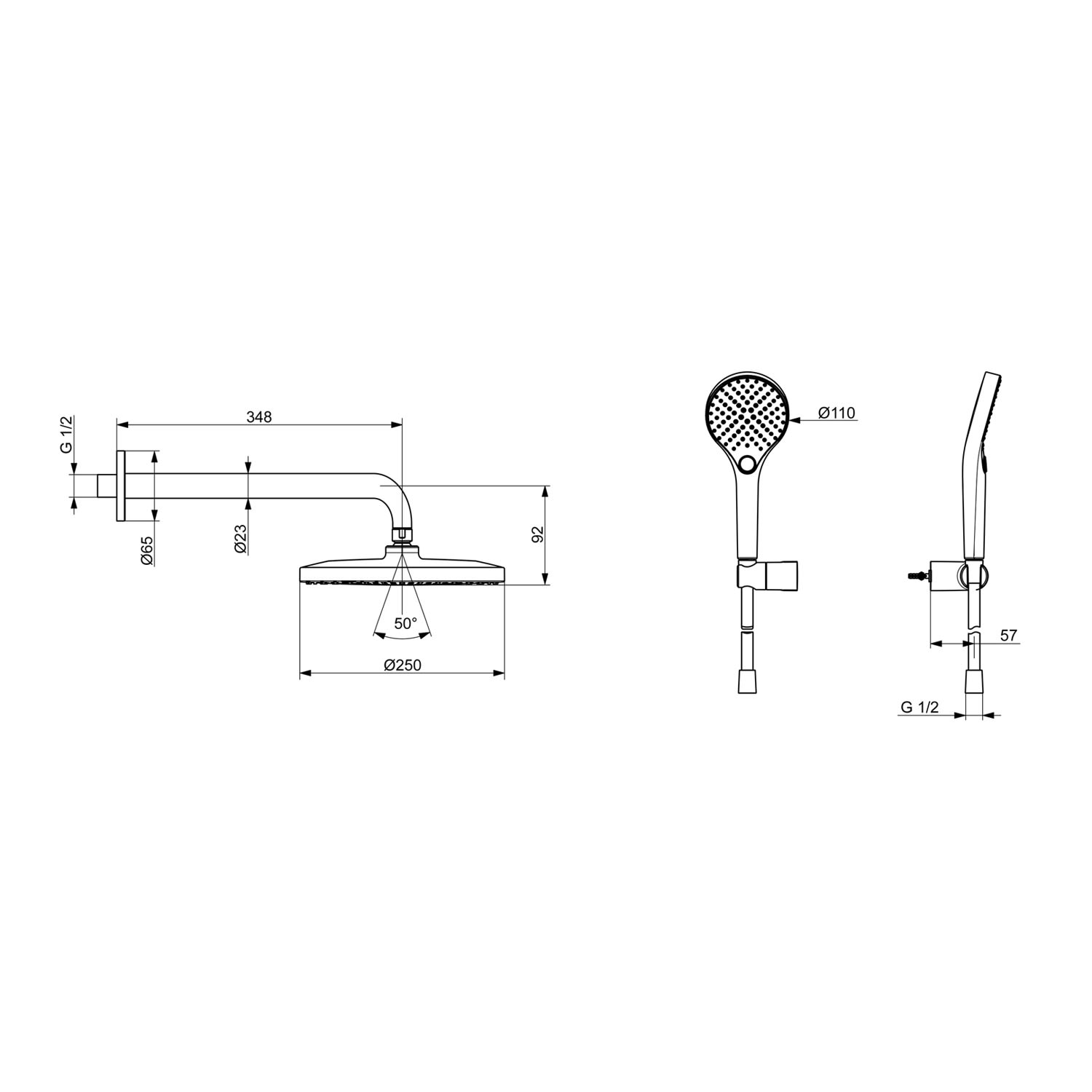 - Druckunabhängige Umstellung: Verhindern ungewolltes Umschalten von Kopf- zur Handbrause bei niedrigem Wasserdruck oder einem sanfteren Wasserstrahl