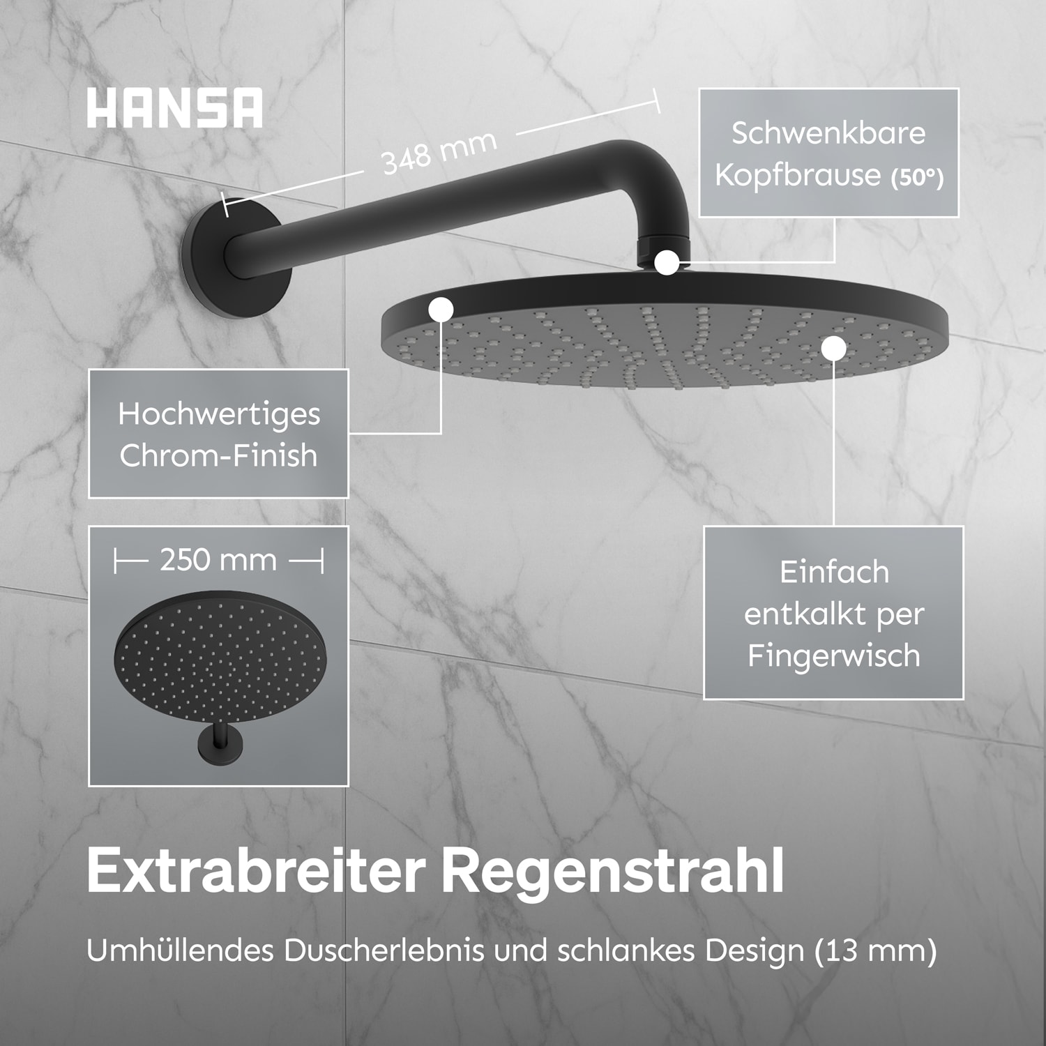 - HANSAVIVA Kopfbrause rund (Ø 25 cm) mit schwenkbarem Duscharm