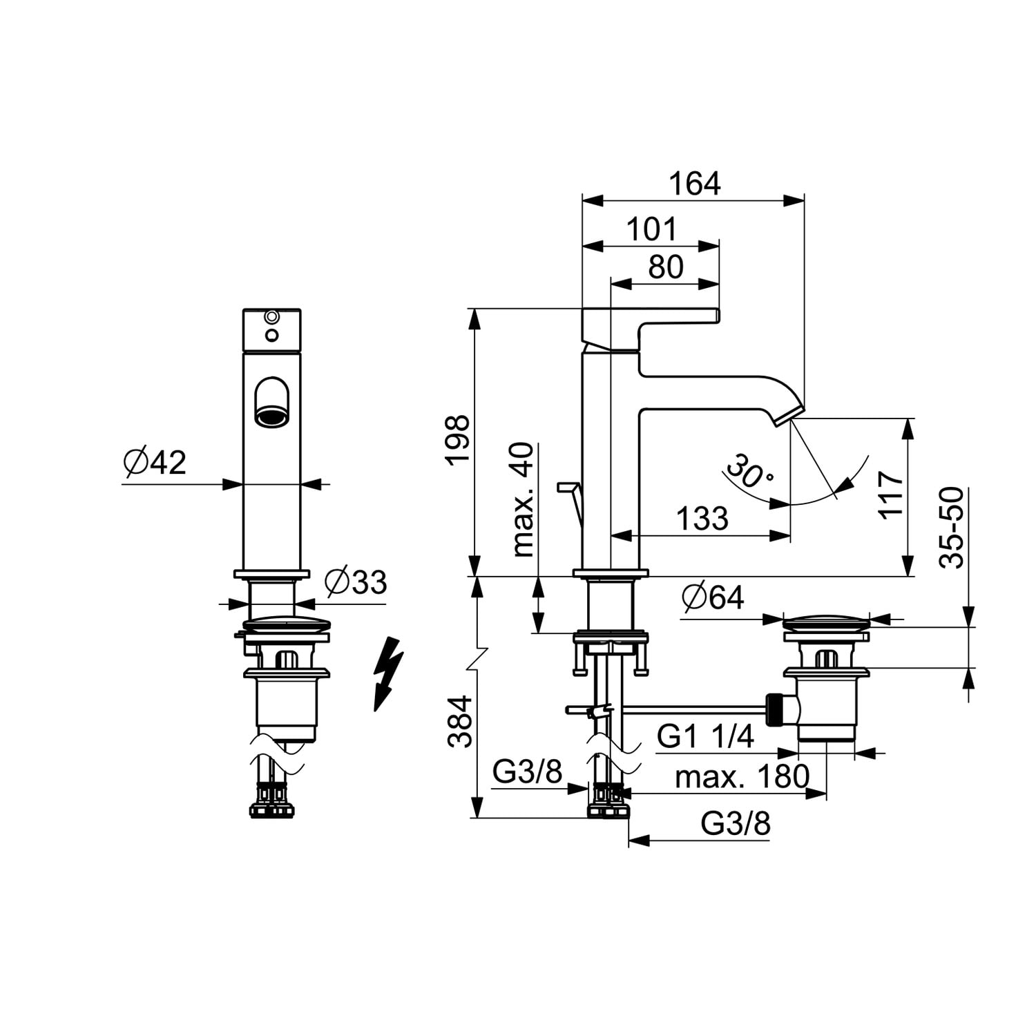 - mit ø 3.0 Steuerpatrone mit keramischen Dichtscheiben zur Wassermengen- und Temperatureinstellung