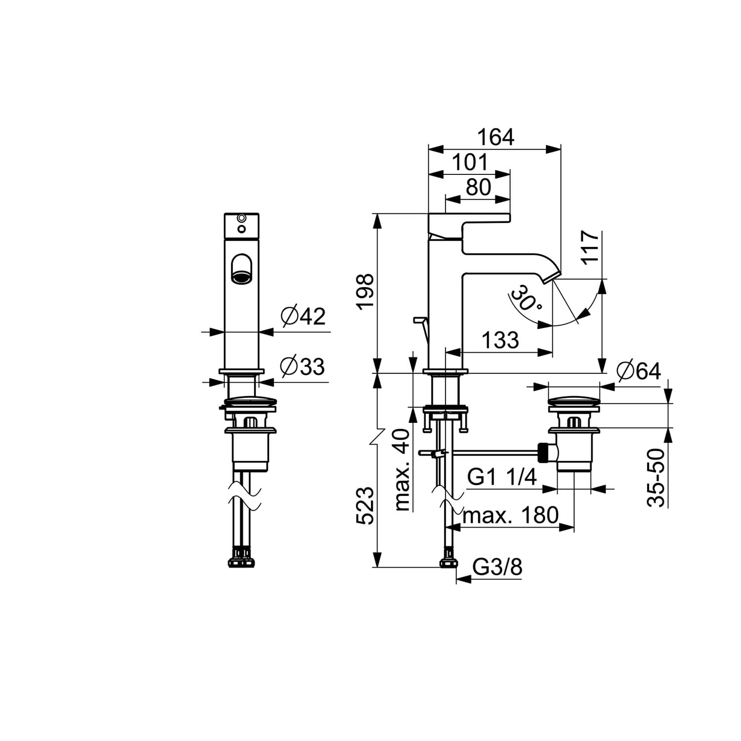 - mit ø 3.0 Steuerpatrone mit keramischen Dichtscheiben zur Wassermengen- und Temperatureinstellung