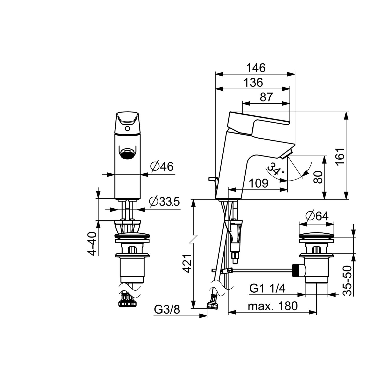 - mit ø 3.0 Steuerpatrone mit keramischen Dichtscheiben zur Wassermengen- und Temperatureinstellung