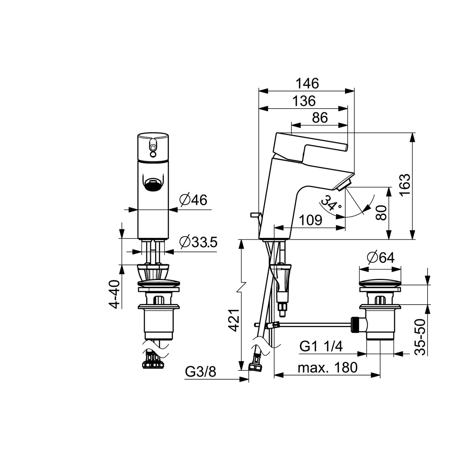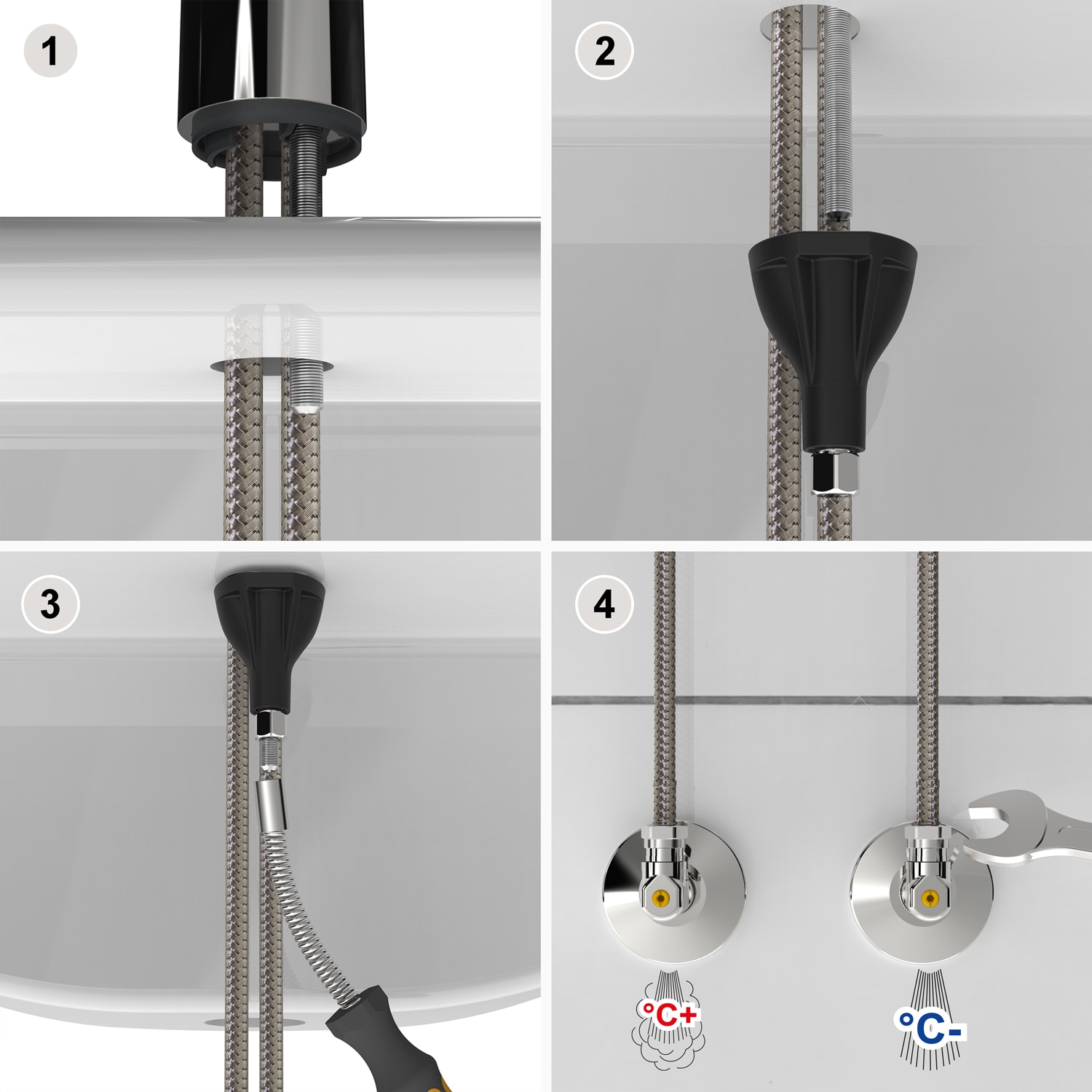 - mit ø 3.0 Steuerpatrone mit keramischen Dichtscheiben zur Wassermengen- und Temperatureinstellung
