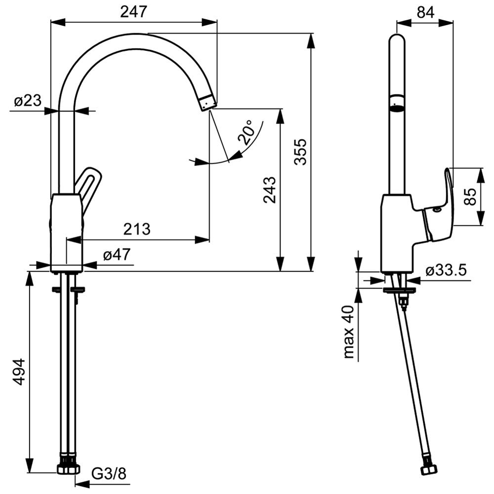 - Einhebelmischer mit schwenkbarem Auslauf 120°, alternativ 60°