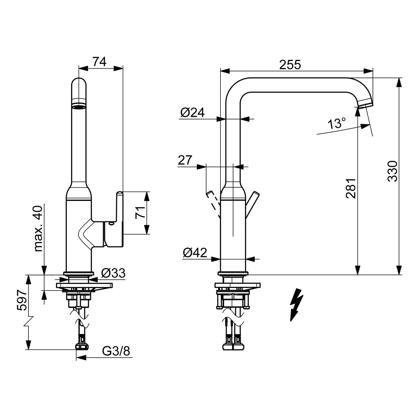 - Einhebelmischer mit Seitenbedienung und Pinhebel