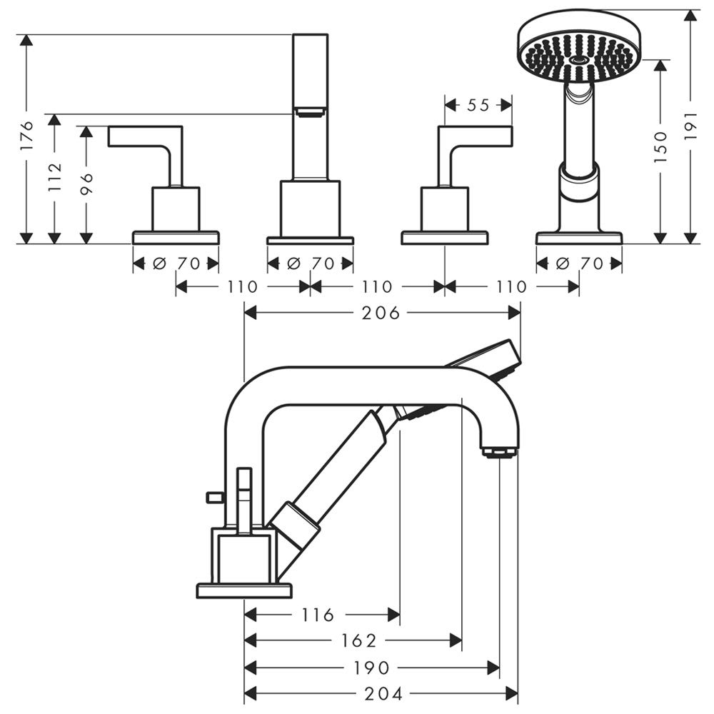 AXOR Citterio Fertigset 4-Locharmatur Hebelgriffe Fliesenrandmontage