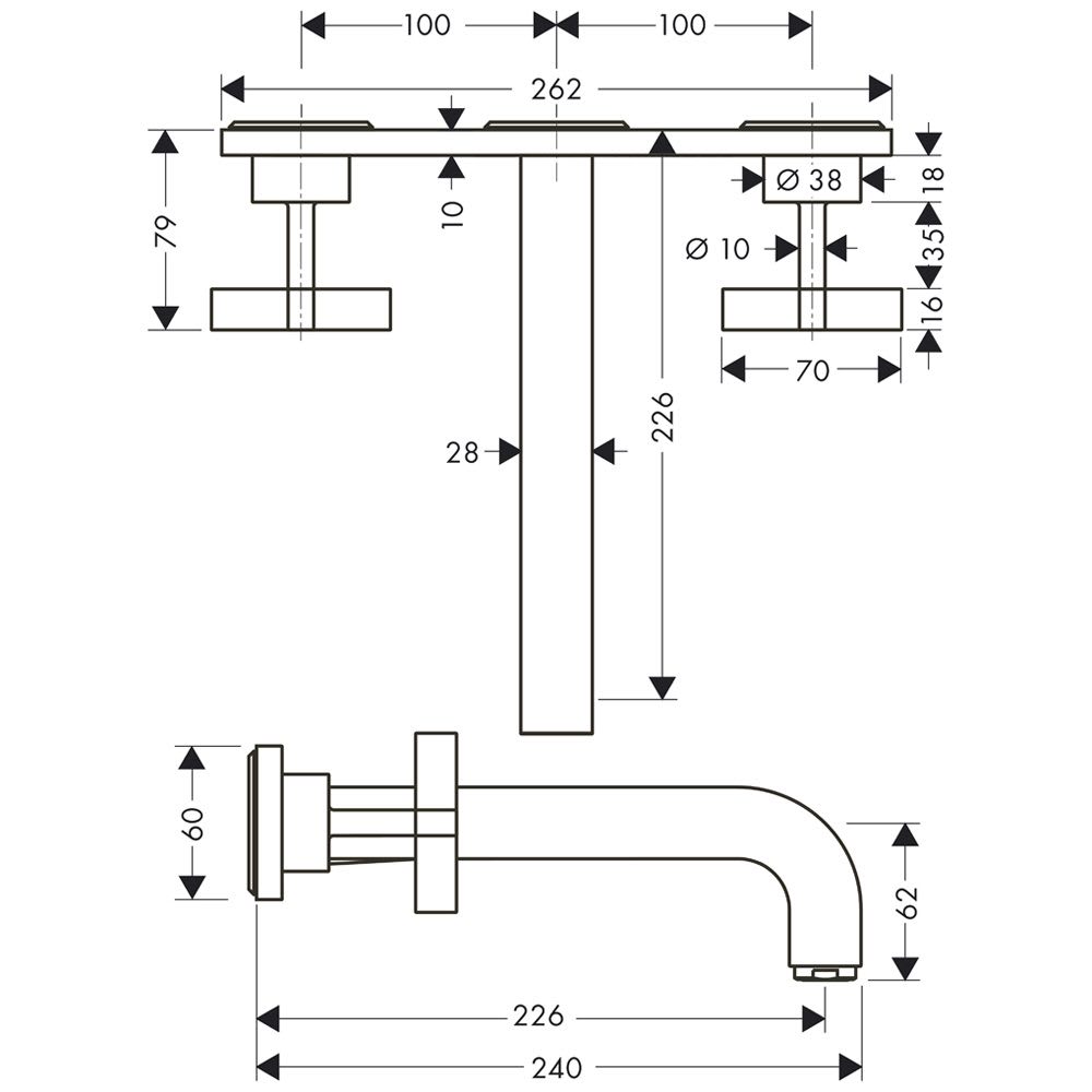 AXOR Citterio 3-Loch Waschtisch-Wandarmatur mit Kreuzgriffen UP