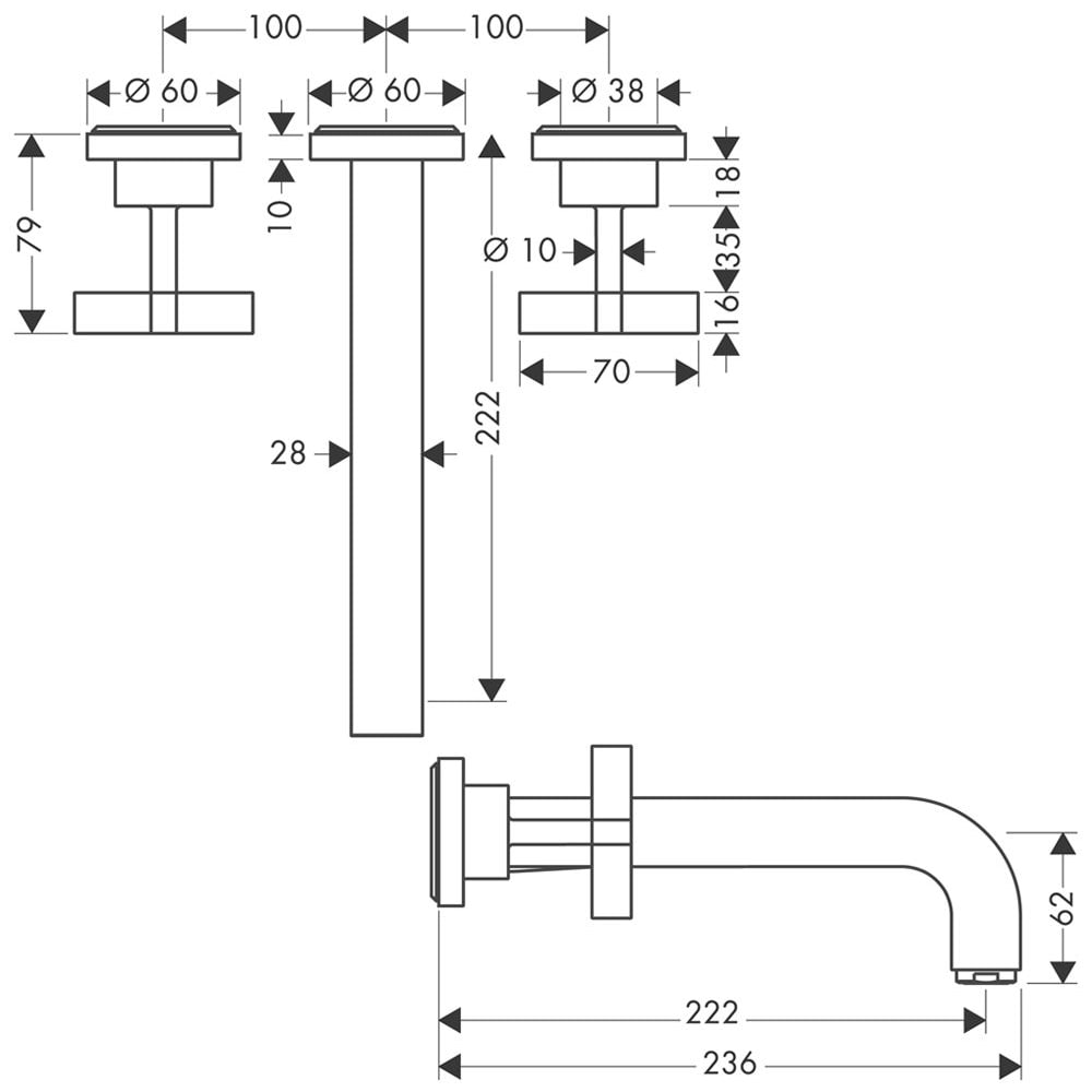 AXOR Citterio 3-Loch Waschtisch-Wandarmatur mit Kreuzgriffen