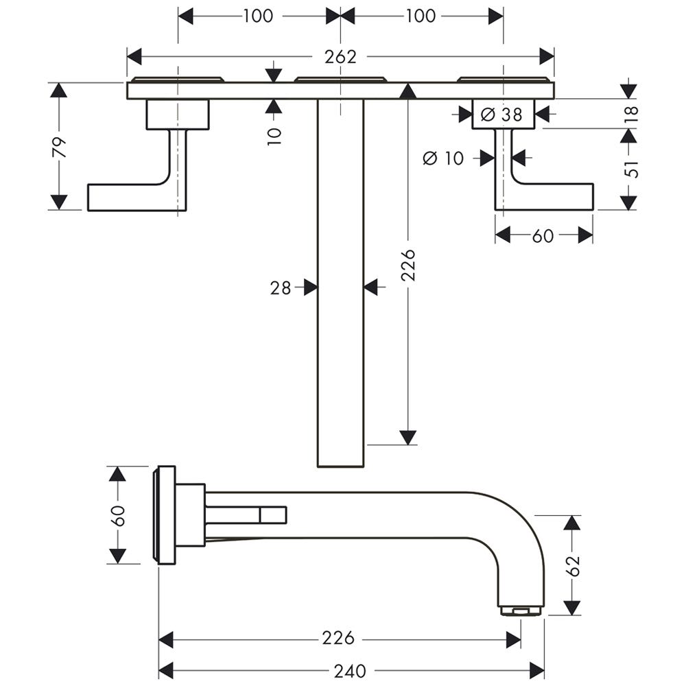 AXOR Citterio 3-Loch Waschtisch-Wandarmatur mit Hebelgriffen UP