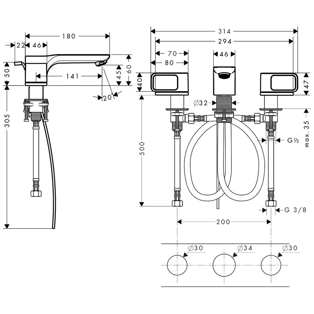AXOR Urquiola 3-Loch Waschtischarmatur mit Rosetten