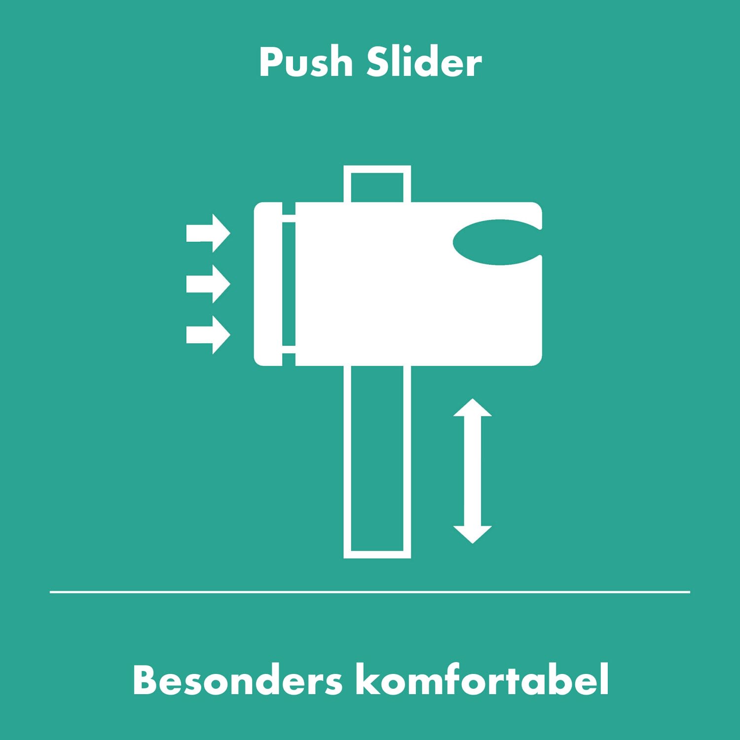 - Push Slider: der Duschhalter lässt sich mit einer Hand drehen und stufenlos verschieben