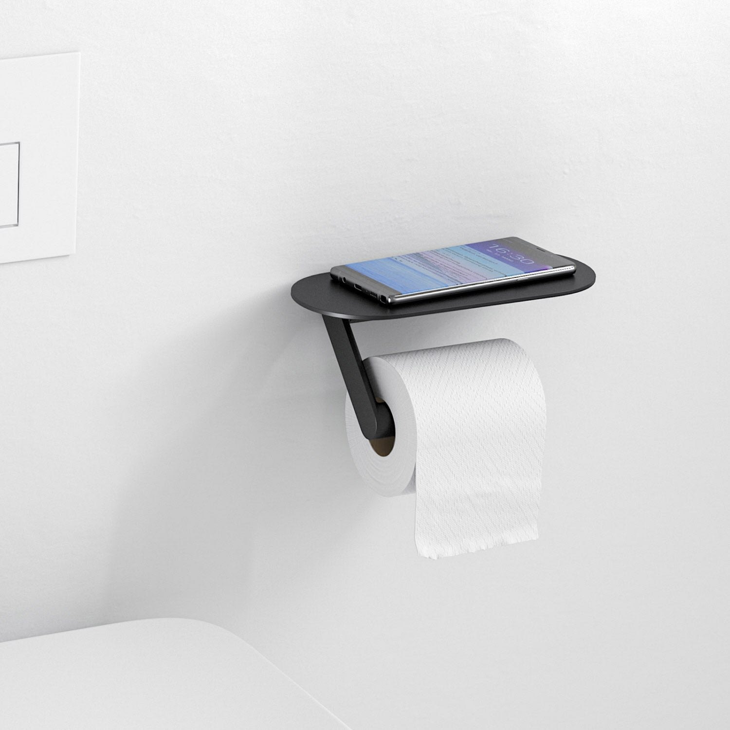 - moderner Toilettenpapierhalter für die Wandmontage mit großer Ablagefläche