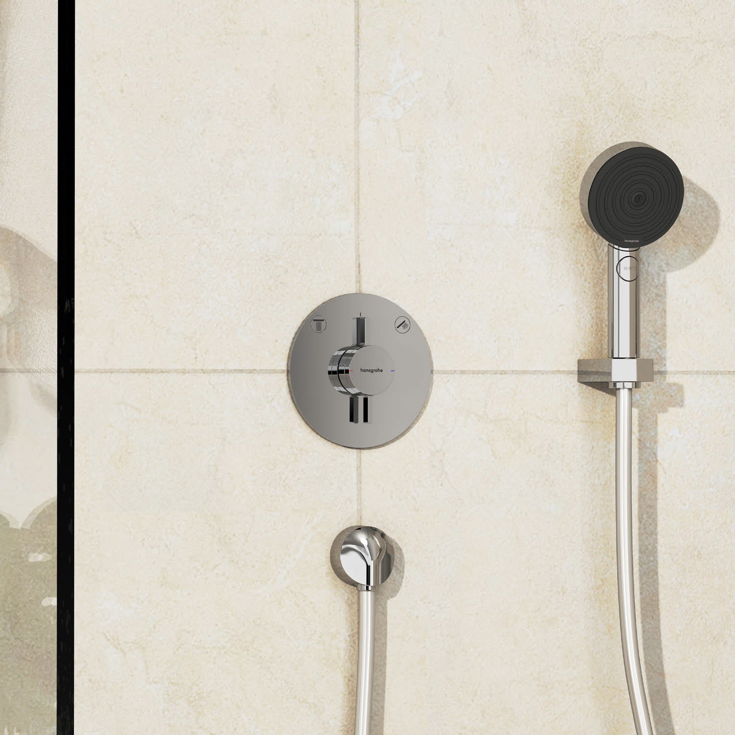 - hansgrohe Unterputzmischer für die Steuerung von 2 Funktionen: z. B. Kopf- und Handbrause