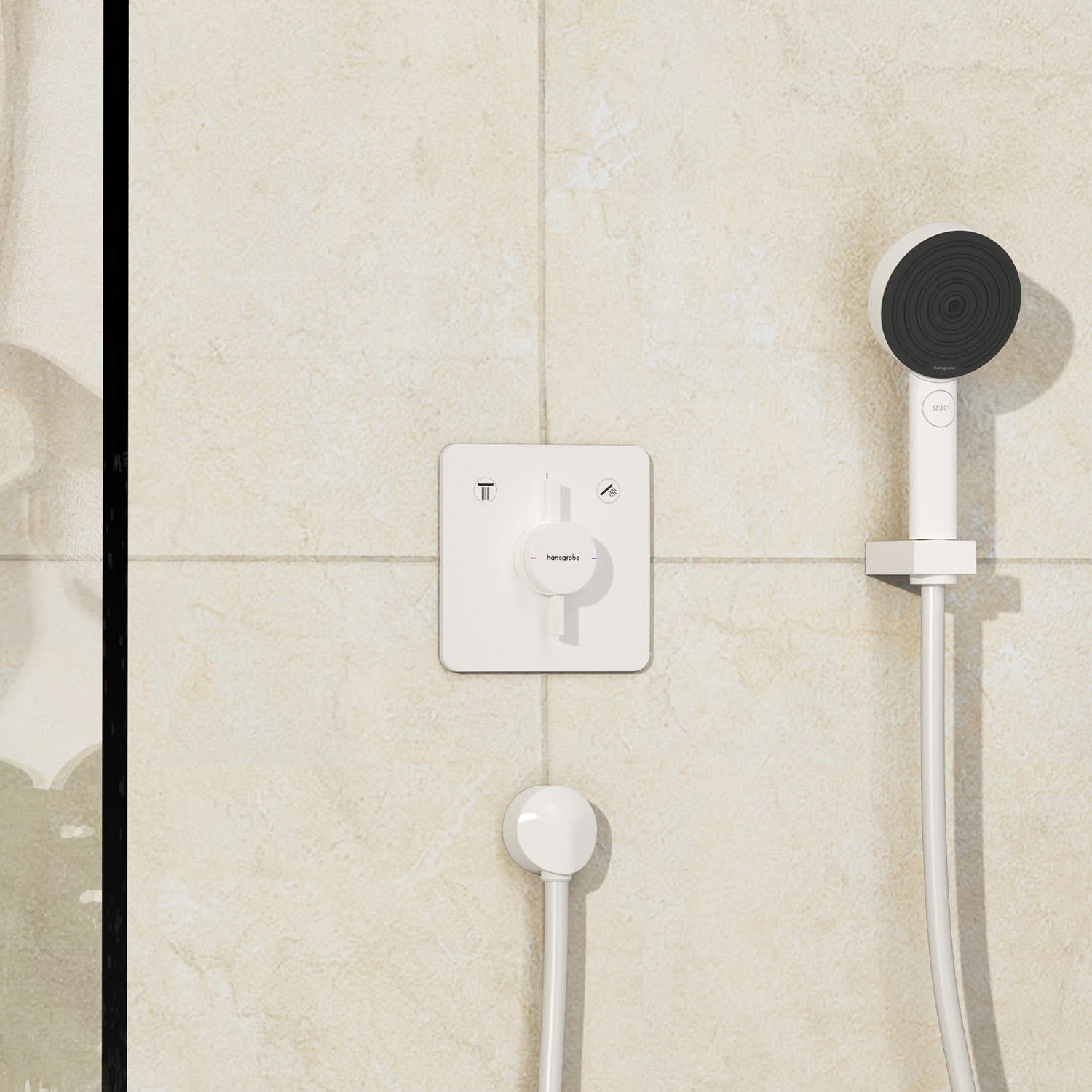 - hansgrohe Unterputzmischer für die Steuerung von 2 Funktionen: z. B. Kopf- und Handbrause