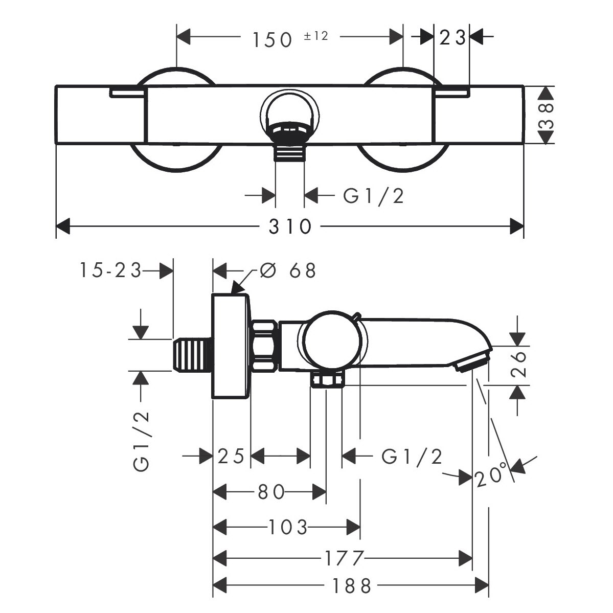 hansgrohe Ecostat Fine Wannenthermostat Aufputz
