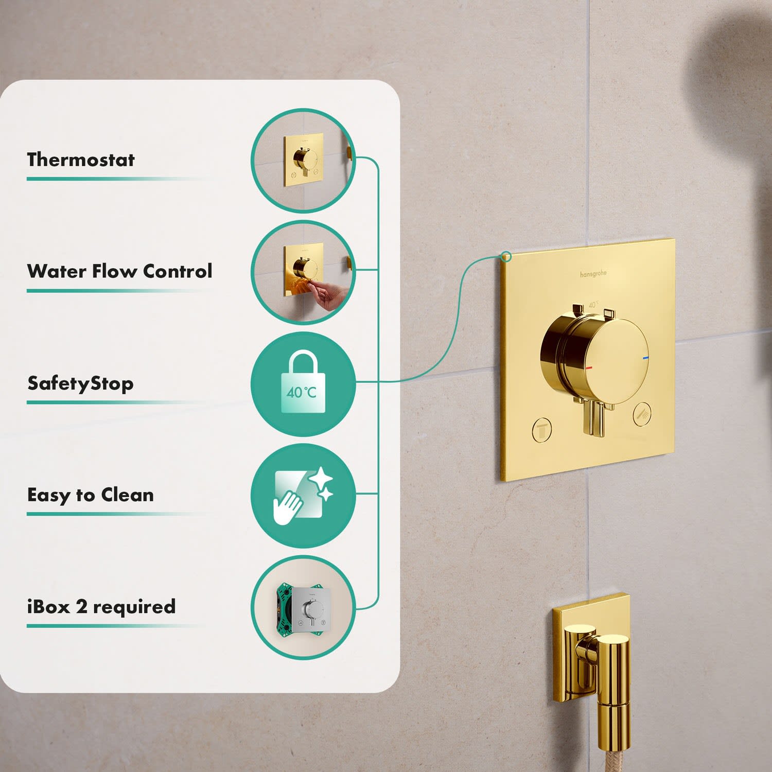 Das hansgrohe Ecostat Comfort E (2 Funktion) ist Ihr formschönes neues Duschthermostat mit individueller Wassersteuerung. Mit vielseitigen Komfortfunktionen und einer großen Auswahl an Designvarianten sowie hansgrohe FinishPlus-Oberflächen finden Sie leicht Ihren Favoriten. Das minimalistische Design ist zeitlos. Die große Oberfläche ohne versteckte Ecken und Kanten vereinfacht die Reinigung. Über ein zentrales, schlankes Kontrollelement aus Metall werden alle Funktionen komfortabel eingestellt.