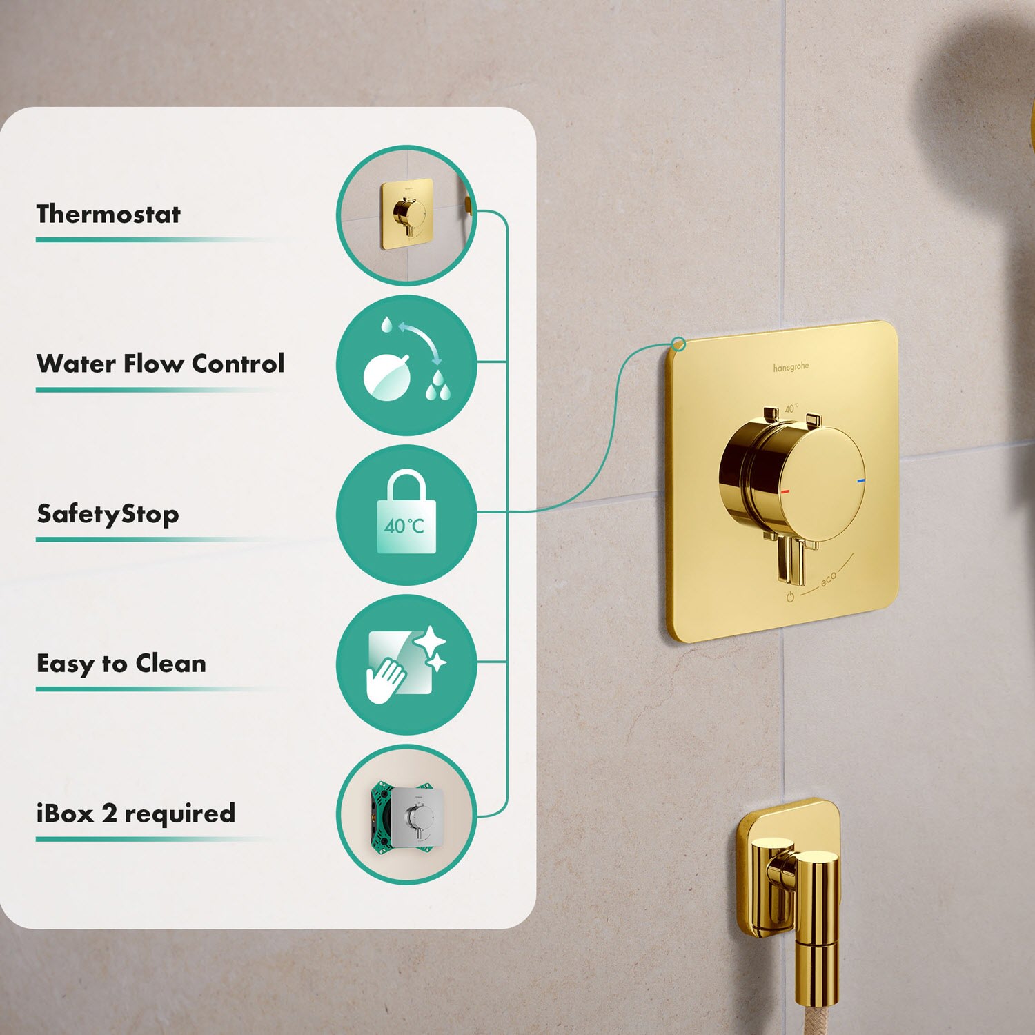 Das hansgrohe Ecostat Comfort Q (1 Funktion) ist Ihr formschönes neues Duschthermostat mit individueller Wassersteuerung. Mit vielseitigen Komfortfunktionen und einer großen Auswahl an Designvarianten sowie hansgrohe FinishPlus-Oberflächen finden Sie leicht Ihren Favoriten. Das minimalistische Design ist zeitlos. Die große Oberfläche ohne versteckte Ecken und Kanten vereinfacht die Reinigung. Über ein zentrales, schlankes Kontrollelement aus Metall werden alle Funktionen komfortabel eingestellt.