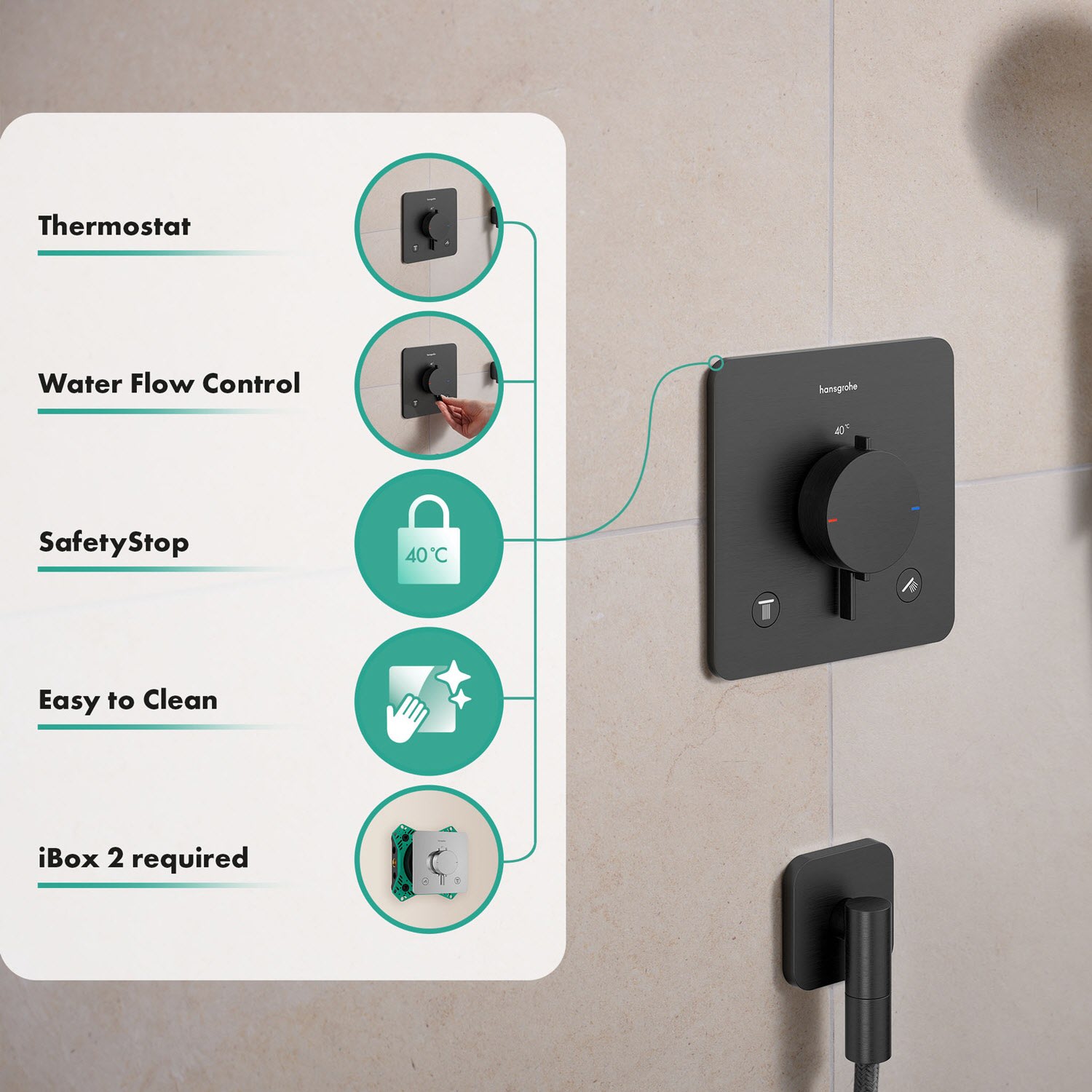 Das hansgrohe Ecostat Comfort Q (2 Funktionen) ist Ihr formschönes neues Duschthermostat mit individueller Wassersteuerung. Mit vielseitigen Komfortfunktionen und einer großen Auswahl an Designvarianten sowie hansgrohe FinishPlus-Oberflächen finden Sie leicht Ihren Favoriten. Das minimalistische Design ist zeitlos. Die große Oberfläche ohne versteckte Ecken und Kanten vereinfacht die Reinigung. Über ein zentrales, schlankes Kontrollelement aus Metall werden alle Funktionen komfortabel eingestellt.