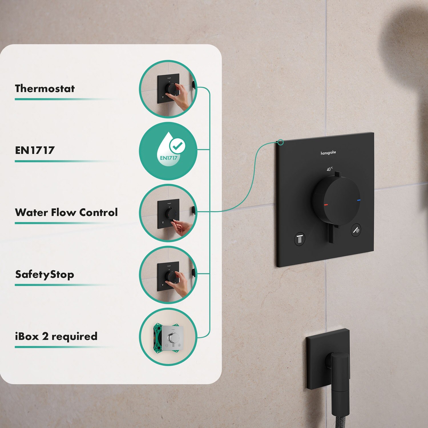 hansgrohe Ecostat Comfort E Thermostat Unterputz für 2 Funktionen mit integrierter Sicherungskombination nach EN1717