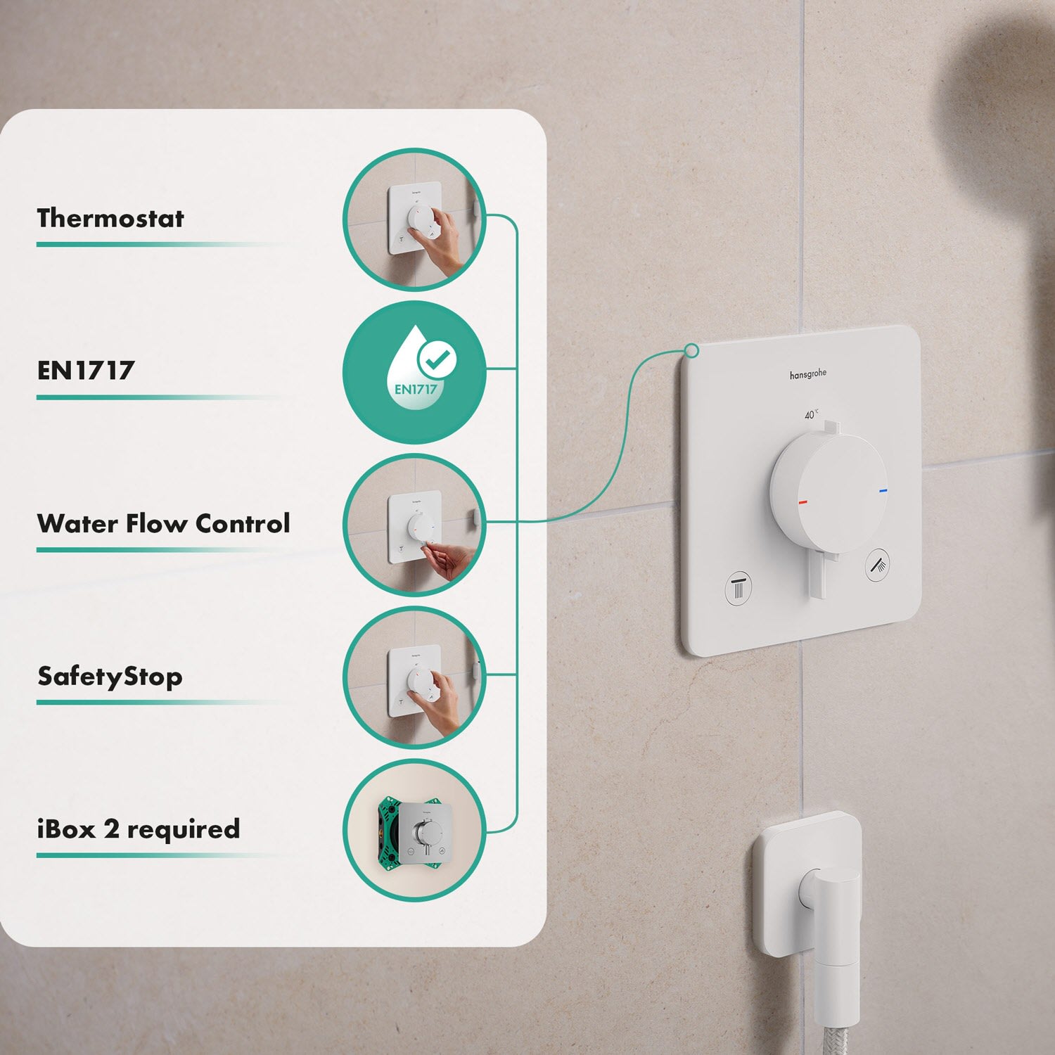 hansgrohe Ecostat Comfort Q Thermostat Unterputz für 2 Funktionen mit integrierter Sicherungskombination nach EN1717
