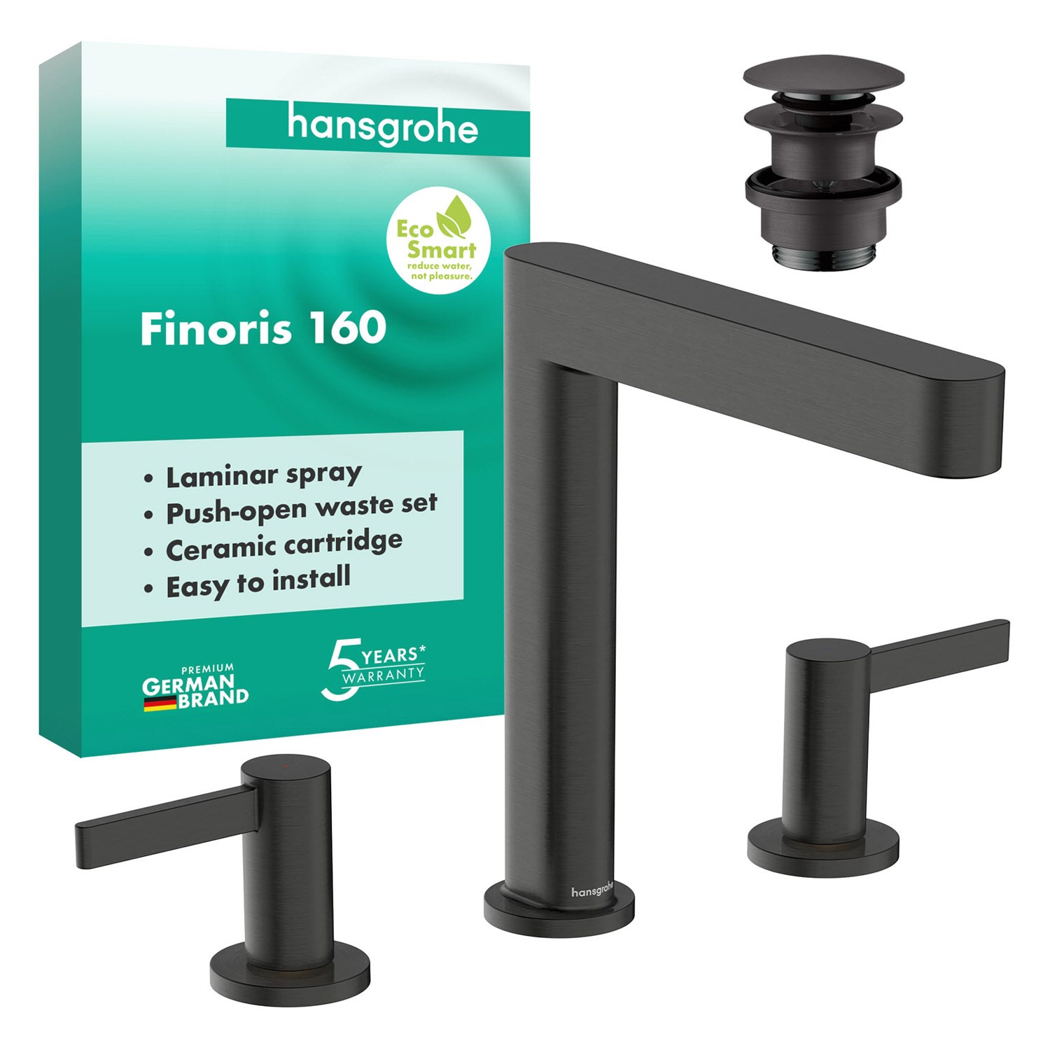 hansgrohe Finoris 3-Loch Waschtischarmatur 160 mit Push-Open Ablaufgarnitur