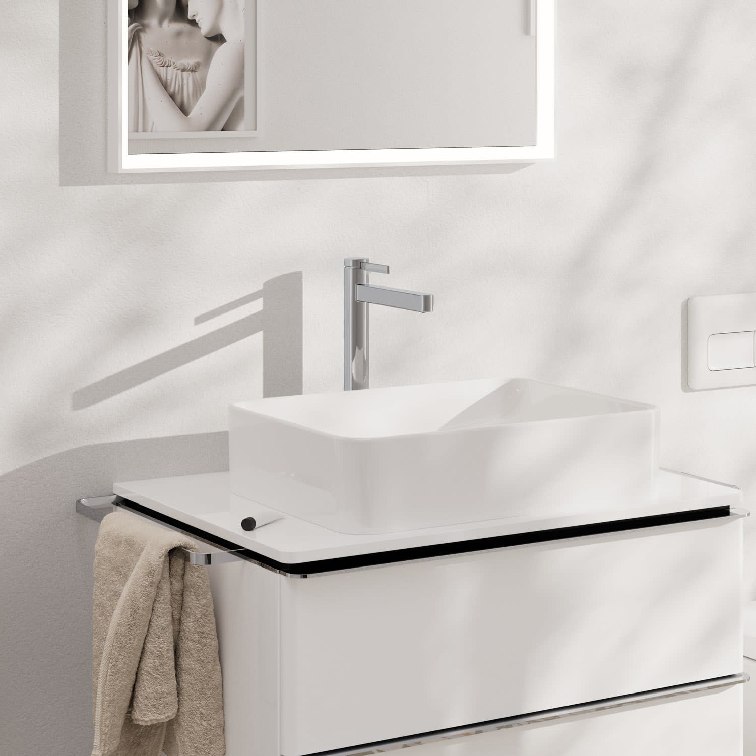 - Harmonische Einheit: Der kristallklare Laminarstrahl ohne Luftbeimischung betont das elegante Design