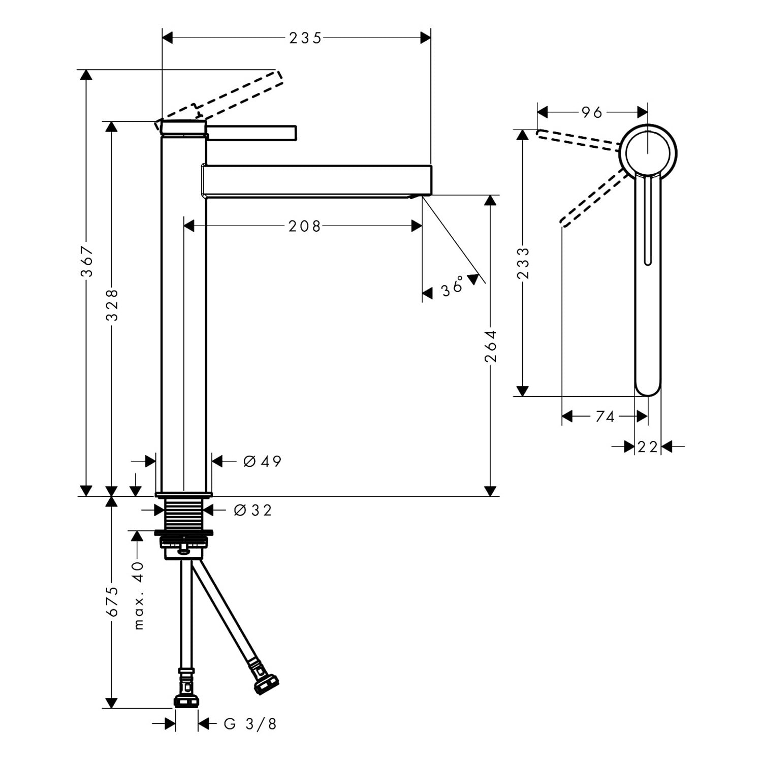 - Einfach eingebaut: Die Armatur wird über flexible Schläuche mit den Wasseranschlüssen verbunden (G 3/8)