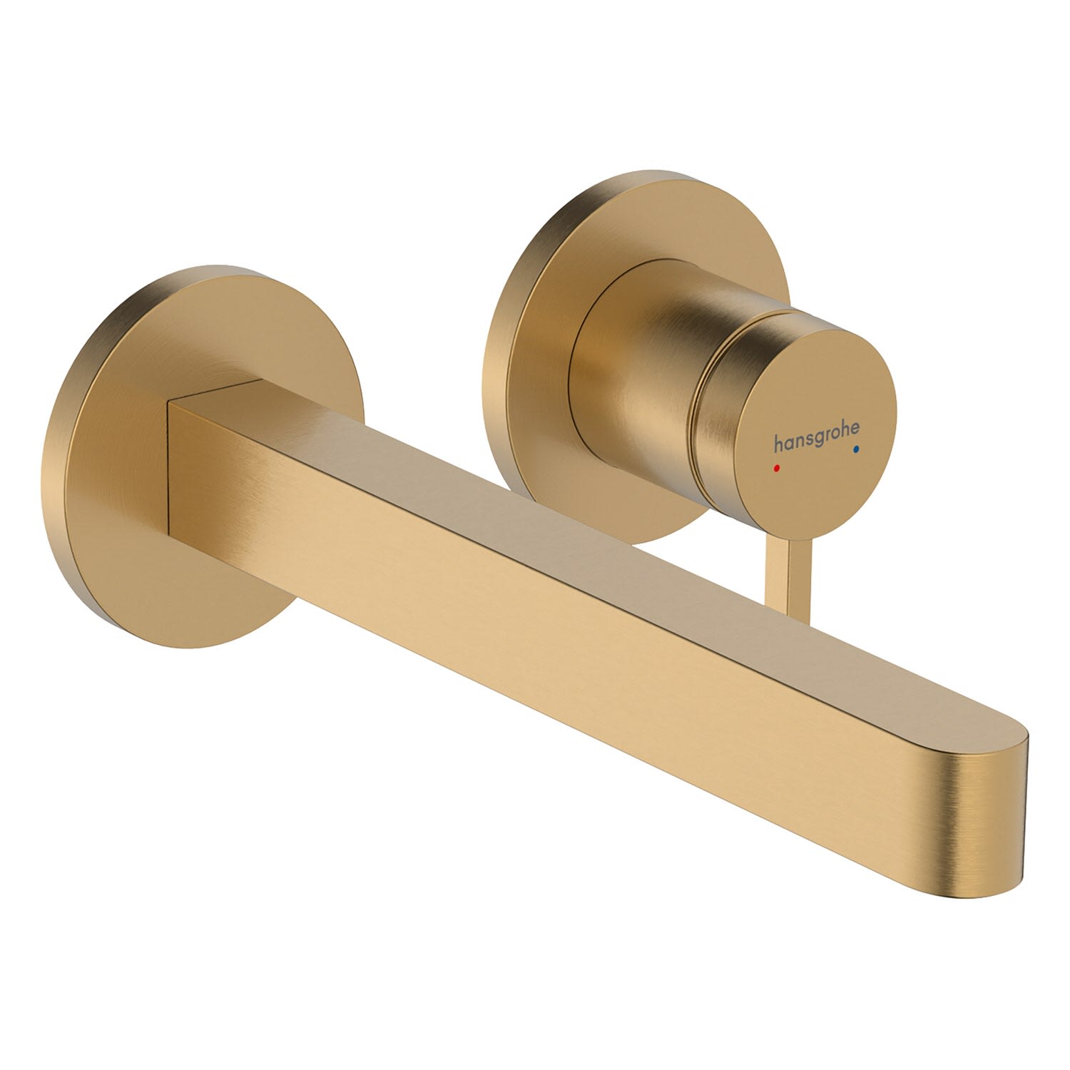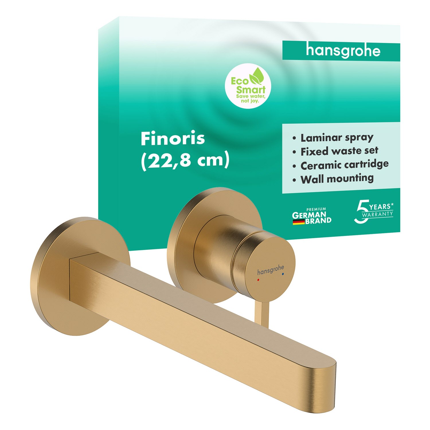 Der Finoris 2-Loch-Mischer für die Wandmontage (22,8 cm) von hansgrohe fällt auf: durch seine schlanke, geometrische Form und die clevere Installation in der Wand. Das schafft mehr Platz rund ums Waschbecken und lässt sich auch gut mit einer freistehenden Waschschüssel kombinieren. Das minimalistische Design setzt mit der gebürsteten Oberfläche in Brushed Bronze einen ausdrucksstarken Akzent im Bad.