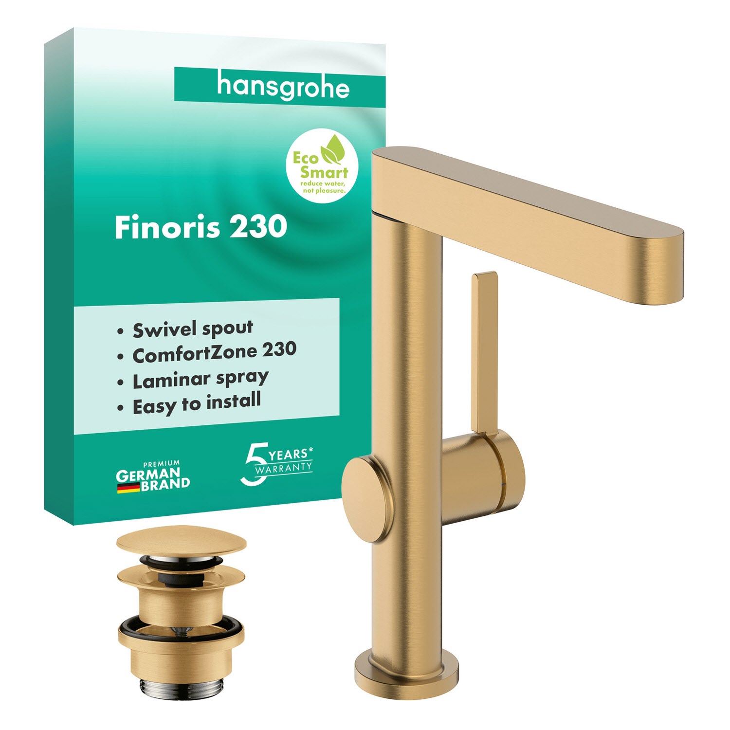 hansgrohe Finoris Einhebel-Waschtischarmatur 230 mit Schwenkauslauf und Push-Open Ablaufgarnitur