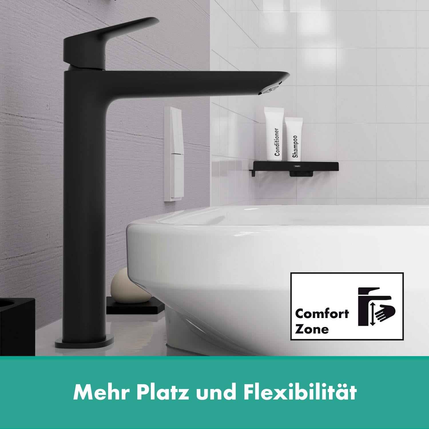 - mehr Bewegungsfreiheit: durch den hohen Auslauf eignet sich die Armatur besonders gut für eine freistehende Waschschüssel (ComfortZone 240)