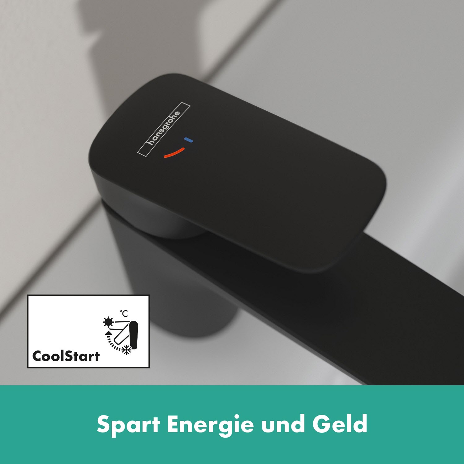 - Energie sparen: steht der Hebel in der Mitte, kommt ausschließlich Kaltwasser. Erst wenn er nach links gedreht wird, fließt Warmwasser (CoolStart)