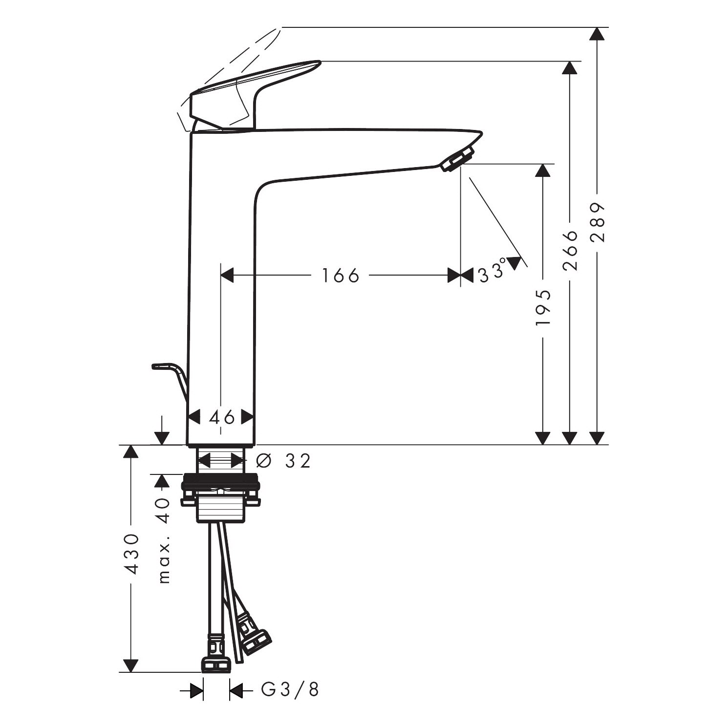 - einfach installiert: die Armatur wird über flexible Schläuche (G 3/8") mit den Wasseranschlüssen verbunden