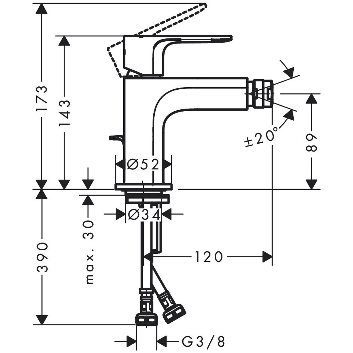 hansgrohe Rebris E Einhebel-Bidetmischer mit Metall Zugstangen-Ablaufgarnitur