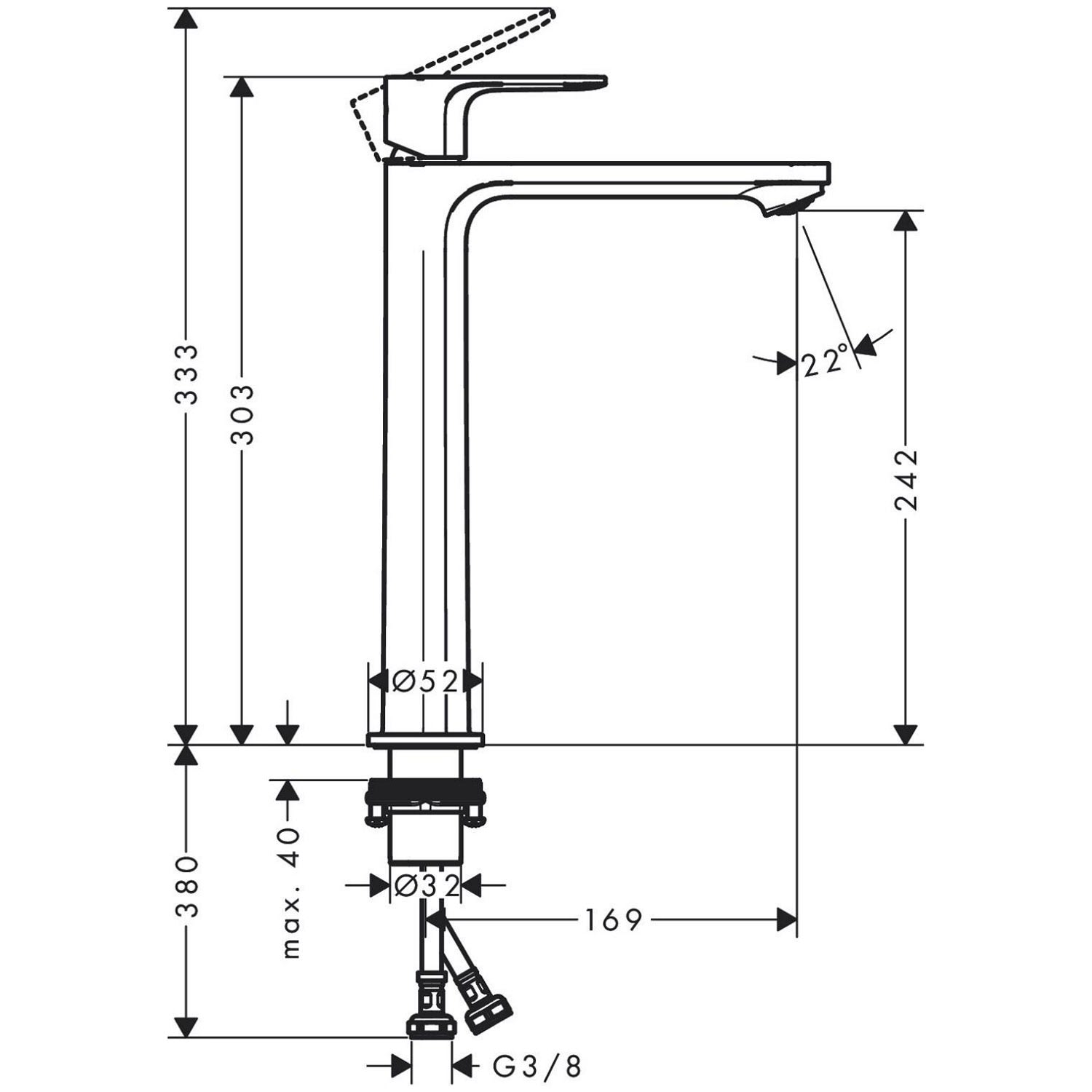 - Lieferumfang: Einhebel-Waschtischmischer, Anschlussschläuche, Schaftbefestigung, Montageschlüssel, Montageanleitung