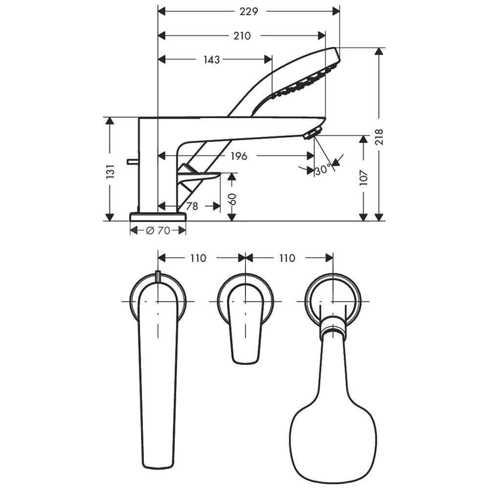 hansgrohe Talis E 3-Loch Wannenrandarmatur mit ausziehbarer Handbrause