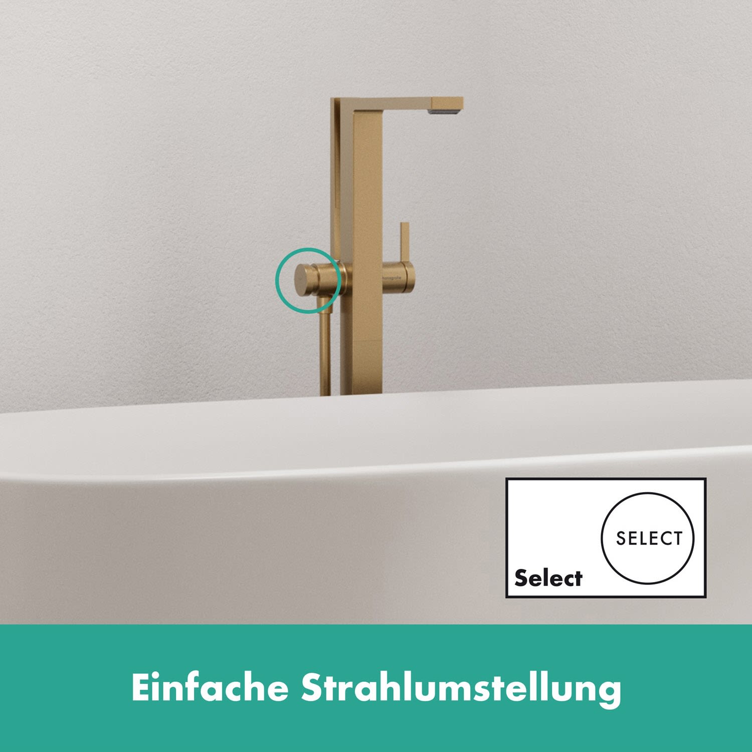 - Umschalten auf Knopfdruck: die Select-Taste auf der linken Seite wechselt von Wanneneinlauf auf Duschkopf