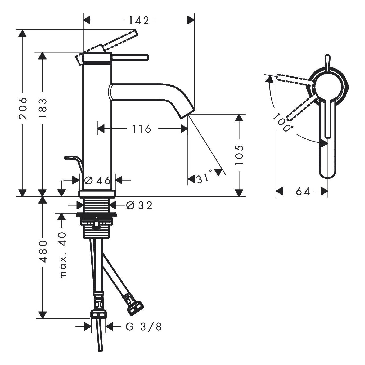 - Auslaufhöhe: 105 mm