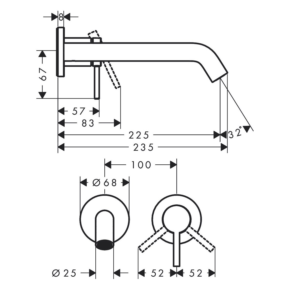 hansgrohe Tecturis S Einhebel-Waschtischarmatur Unterputz für Wandmontage mit Auslauf 22,5 cm