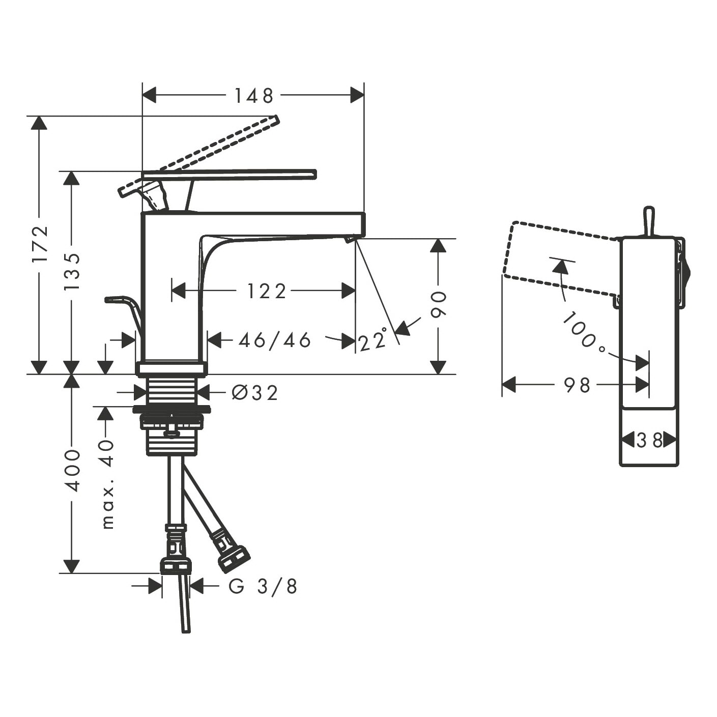 - extra nachhaltig: EcoSmart+ nutzt nur 4 l/min (bei 3 bar) und damit 20 % weniger Wasser als hansgrohe EcoSmart