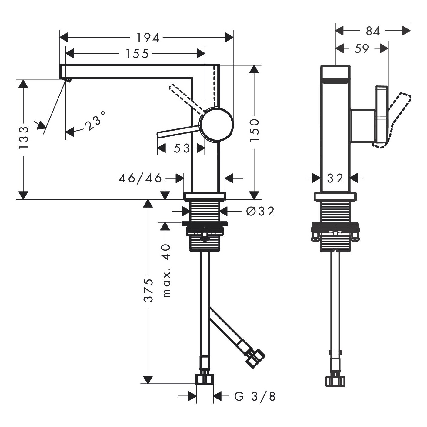- einfach installiert: die Armatur wird über flexible Schläuche mit den Wasseranschlüssen verbunden (G 3/8)