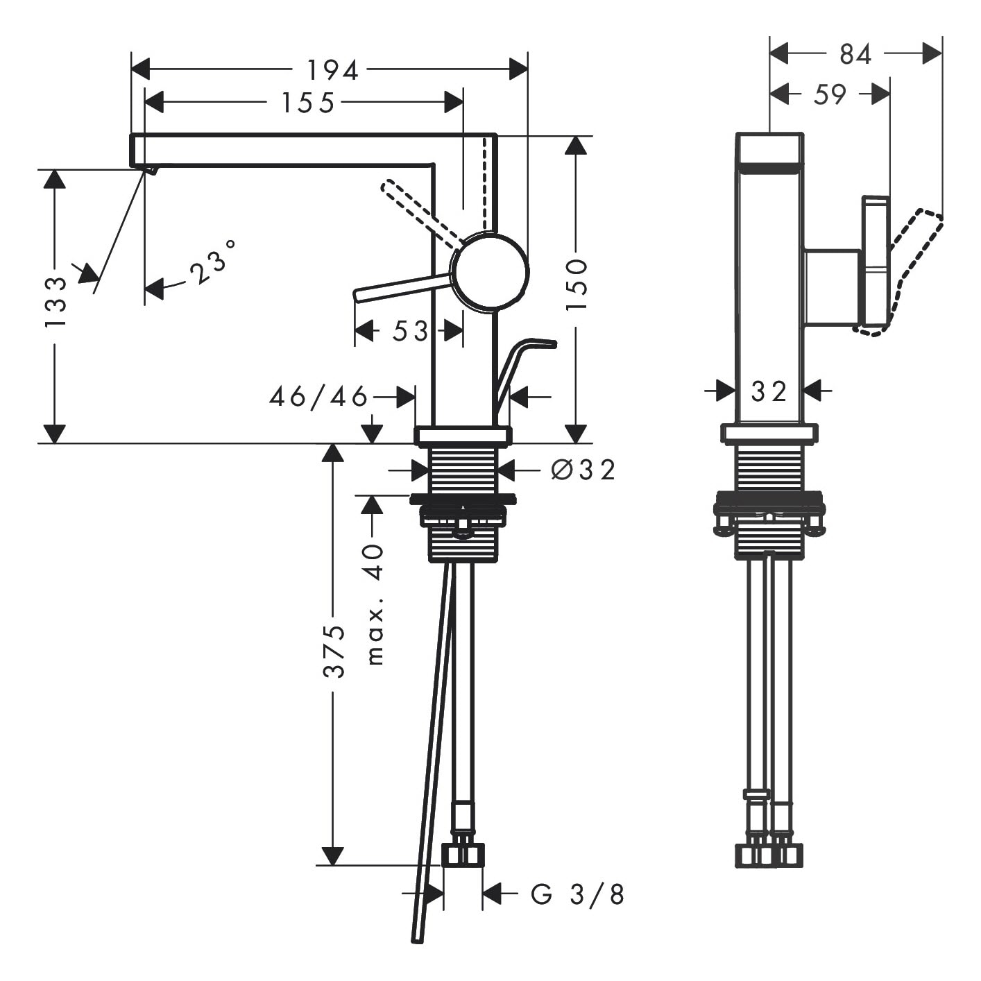 - einfach installiert: die Armatur wird über flexible Schläuche mit den Wasseranschlüssen verbunden (G 3/8)